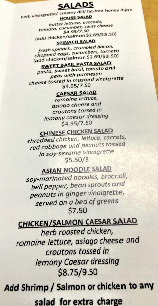 Shredded chicken, lettuce, carrots, red cabbage and peanuts tossed in soy-sesame vinaigrette, Chinese dressing, lemongrass dressing and caesar dressing.