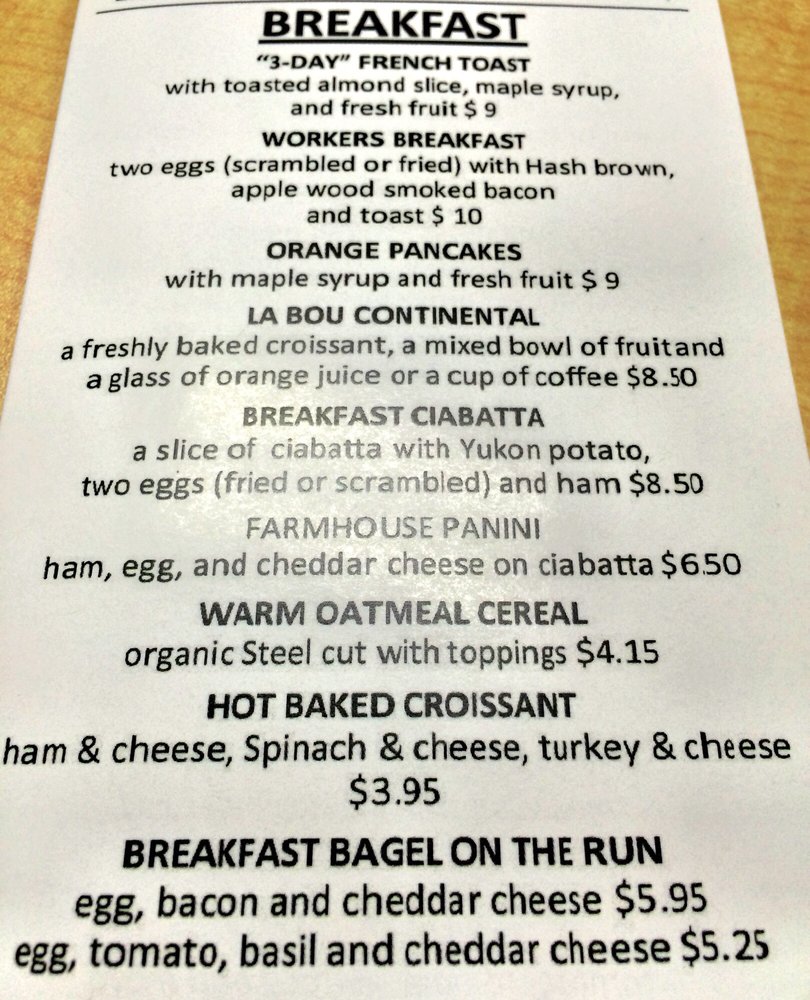 La Bou Bakery & Café Sacramento Menu (Update 2025)